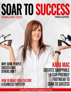 SOAR TO SUCCESS / Feature Article Creating a Sustainable Wardrobe Kara doesn’t only focus on sustainability when it comes to shoes, she believes so strongly in taking care of the planet that it carries over to her wardrobe as well. She offered three tips for women to create a more sustainable wardrobe. 1. Recycle Your Clothes. If you no longer want an item, donate it to a charity. Do not throw them away! 2. Become a Rent a Runway member. It’s a huge company where you can rent clothing. As a monthly member, you get 8 different articles of clothing a month. 3. Repair Your Clothes. Instead of getting rid of something that needs work, either repair it or find someone to do it for you. Or if it doesn’t fit and you really love it, have it altered. Kara learned that it is not easy starting a business from scratch, that she must be resilient and roll with the punches. “I look at what’s happening to other people in the world, it is so disheartening. Severe weather, fires, floods, and people being killed, or discriminated against and my life looks pretty darn good. I don’t know if that’s really the best way to go about it, but honestly, it just makes me feel so blessed. I have ups and downs and there is a lot of turbulence, especially in business, when you’re a single founder. But when I see the news sometimes, I realize, I’m okay?” One major setback Kara experienced was her Facebook account was hacked and her bank account drained. She had been working on a crowd funding project to help finance her expanding inventory costs. Being shut down on Facebook and Instagram for six weeks severely affected her business. Working with Meta everything has been restored, but it was an ordeal of the highest order. Kara is once again active on Facebook, her personal page is https://www.facebook.com/kara. mac.33 and her business page is https://www.facebook.com/ShoeCandyShoes. We enjoyed our podcast with Kara, where you’ll find way more information that we could include here. Listen on iTunes or watch on YouTube. To learn more about Kara Mac Shoes, or to order a pair, visit her website https://karamac.com/ She is even offering a Discount, good until March 15 for Soar to Success readers. Use the code SOARTOSUCCESS25 for 25% Off your First Order.